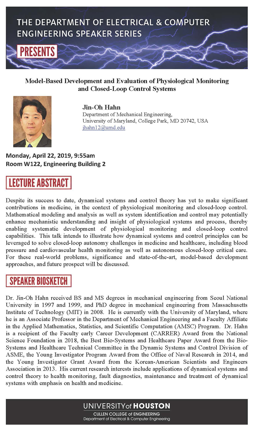 ECE Speaker Series Presents: Model-Based Development and Evaluation of Physiological Monitoring and Closed-Loop Control Systems (4/22/19)