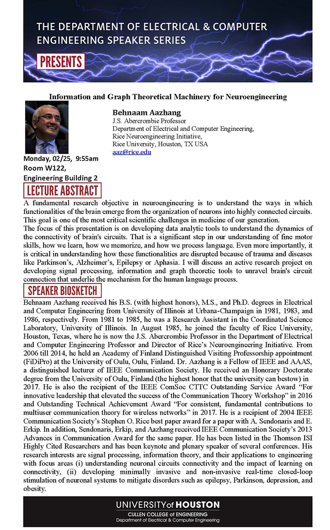 The ECE Speaker Series Presents: Information and Graph Theoretical Machinery for Neuroengineering (2/25/19)