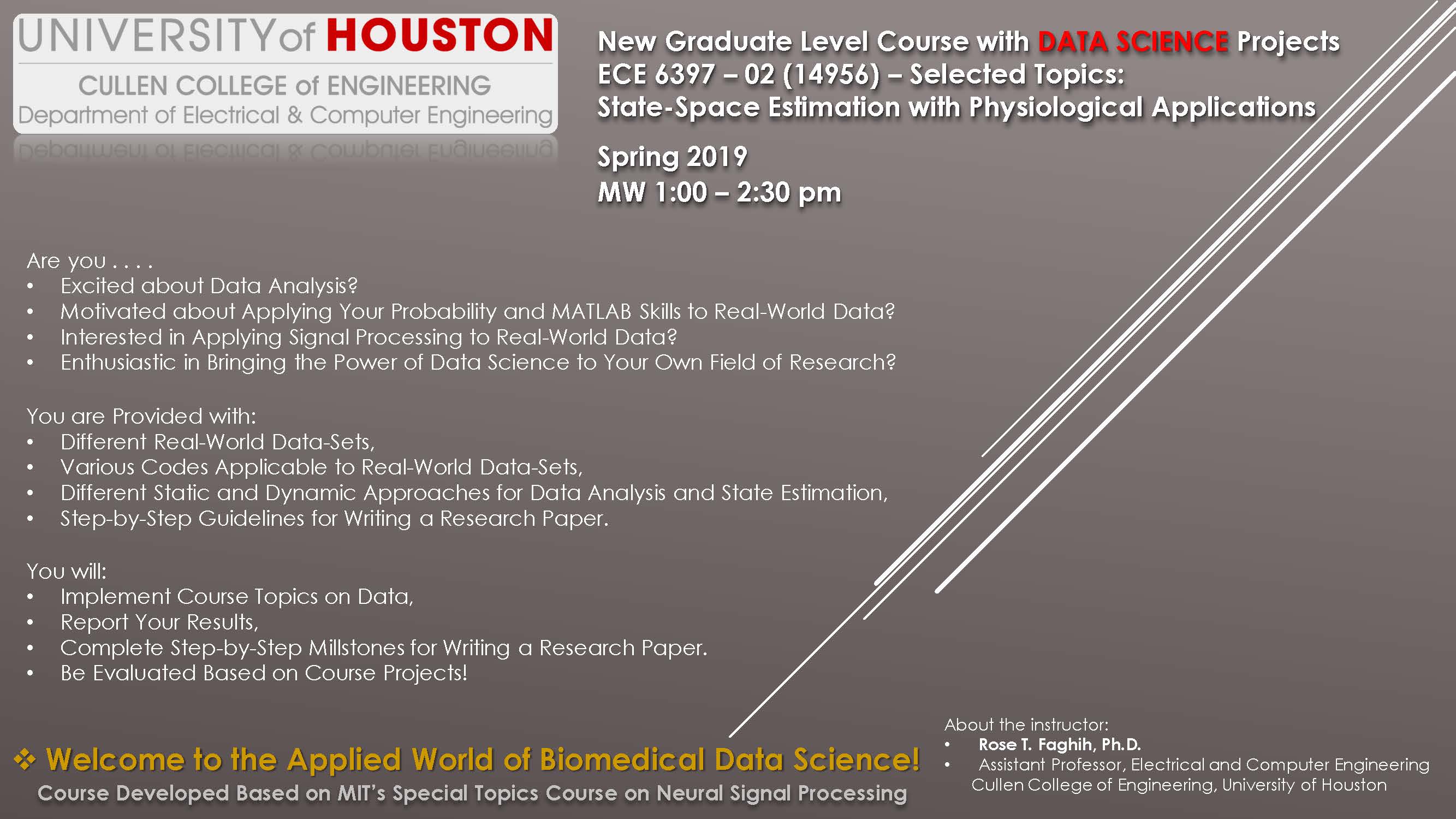 [CCoE Notice] New Graduate Level Course with Data Science Projects (ECE 6397; Section 02; Class 14956; MW 1:00 - 2:30 PM)