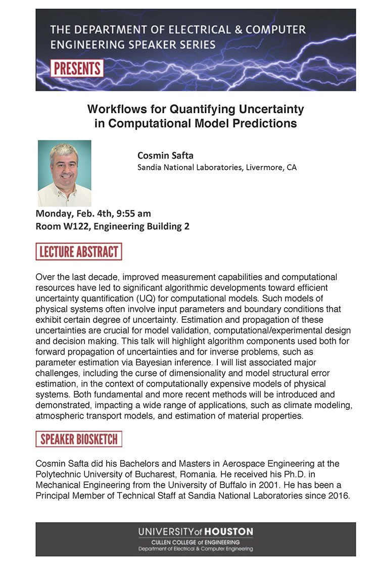 [CCoE Notice] The ECE Speaker Series Presents: Workflows for Quantifying Uncertainty in Computational Model Predictions (2/4/19)