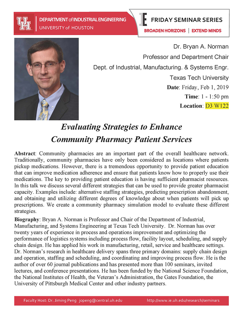 IE Friday Seminar Series: Evaluating Strategies to Enhance Community Pharmacy Patient Services (2/1/19)