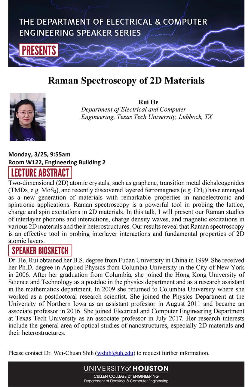 The ECE Speaker Series Presents Raman Spectroscopy of 2D Materials (3/25)