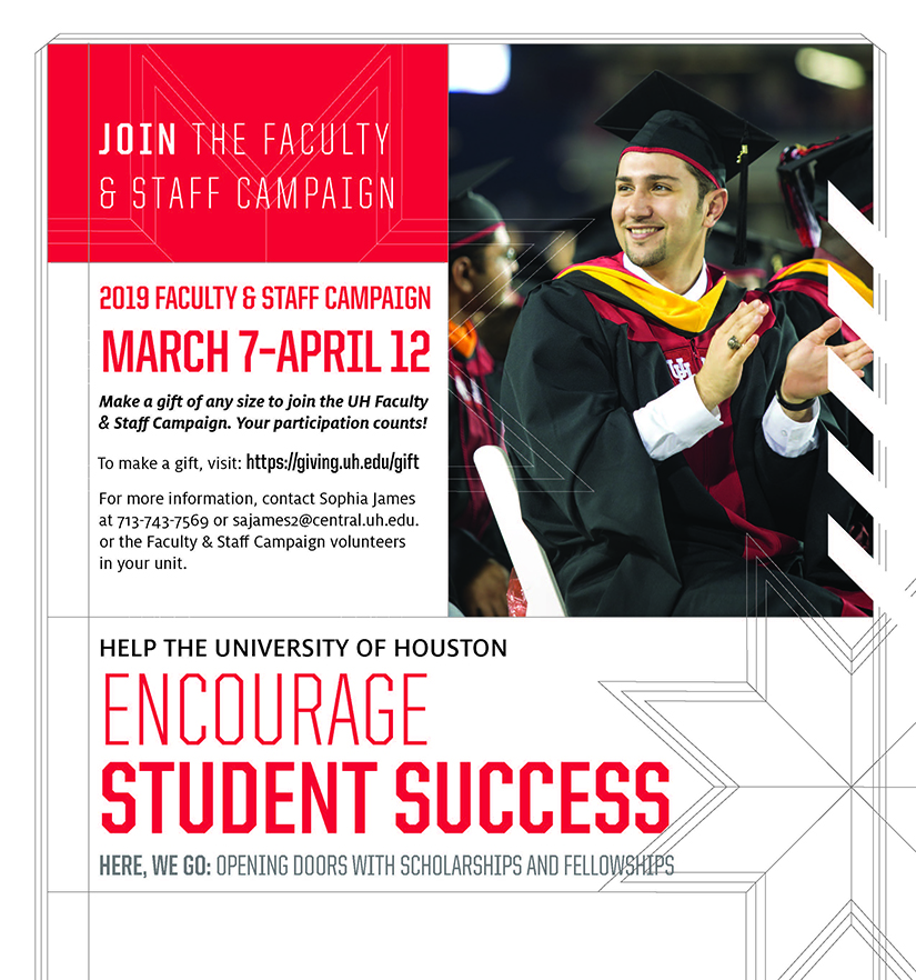 As the ambassador for the Cullen College Engineering, I ask that you please consider making a small gift to the college or program of your choice, keeping in mind that it is not about the amount of the gift that matters, just that you give.