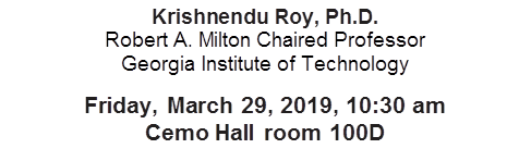 [Krishnendu Roy, Ph.D. Robert A. Milton Chaired Professor Georgia Institute of Technology Friday, March 29, 2019, 10:30 am Cemo Hall room 100D]