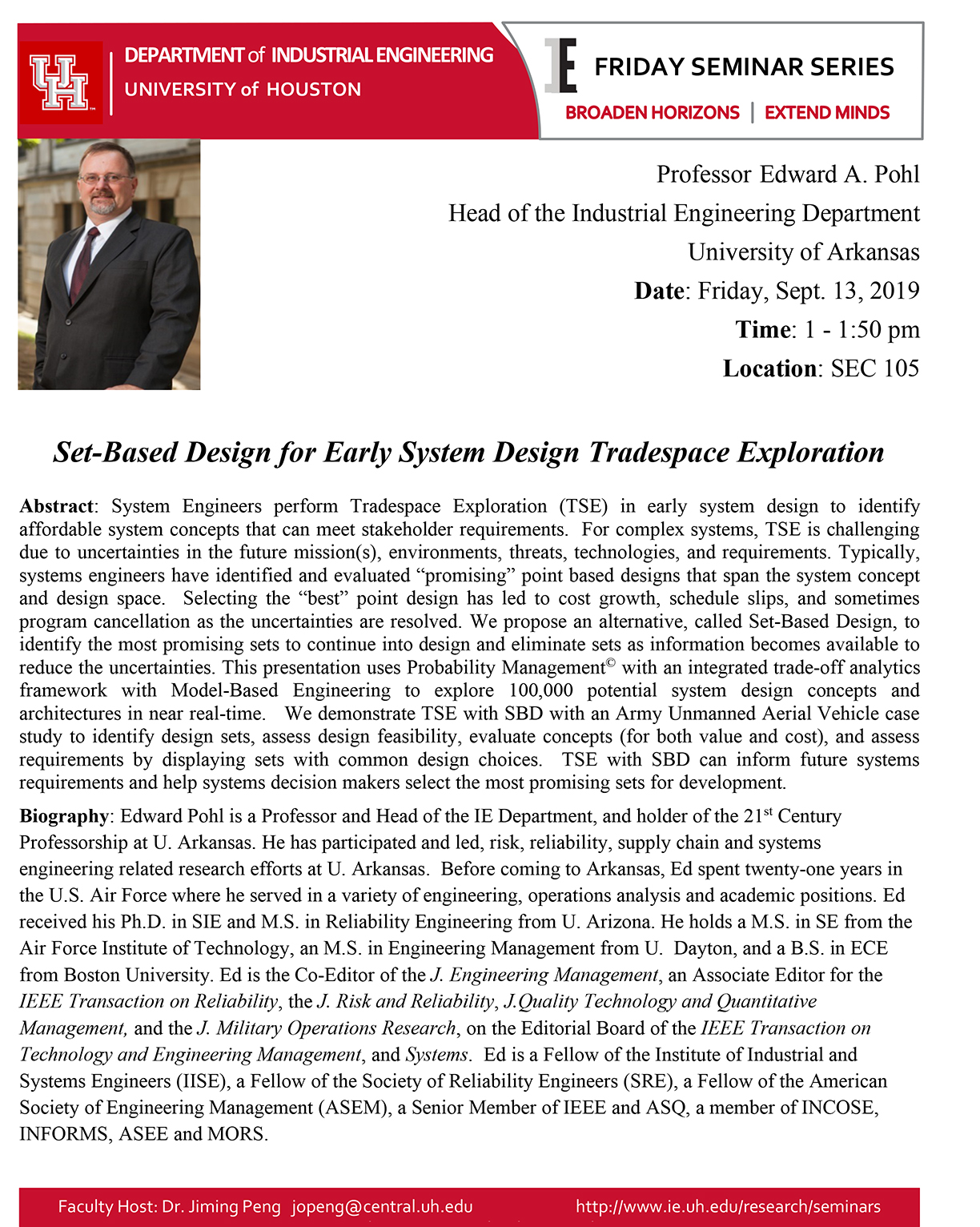 [CCoE Notice] IE Friday Seminar Series: Set-Based Design for Early System Design Tradespace Exploration - Friday, Sept. 13, 2019