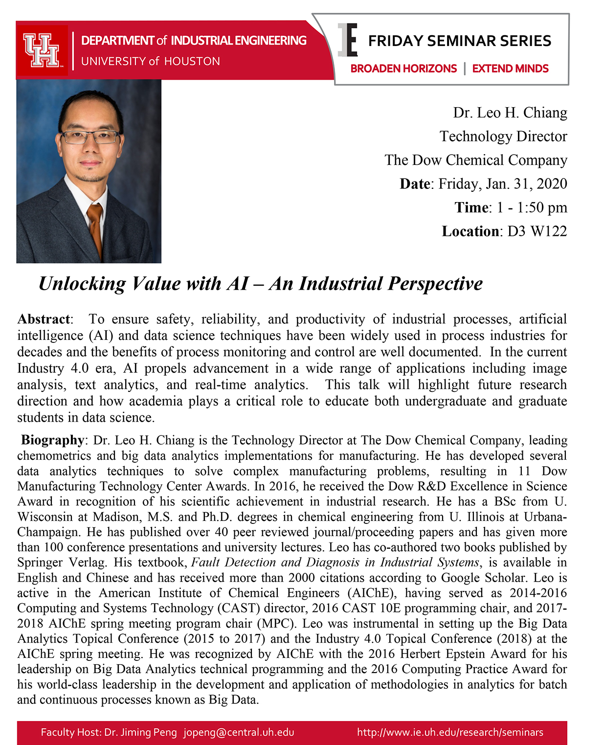 [CCoE Notice] IE seminar on January 31: Unlocking Value with AI – An Industrial Perspective