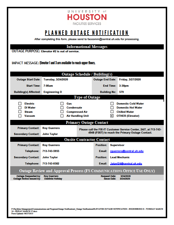 Name: ELEVATOR OUTAGE NOTIFICATION - ENGINEERING D - TUESDAY MARCH 24 - FRIDAY....pdf