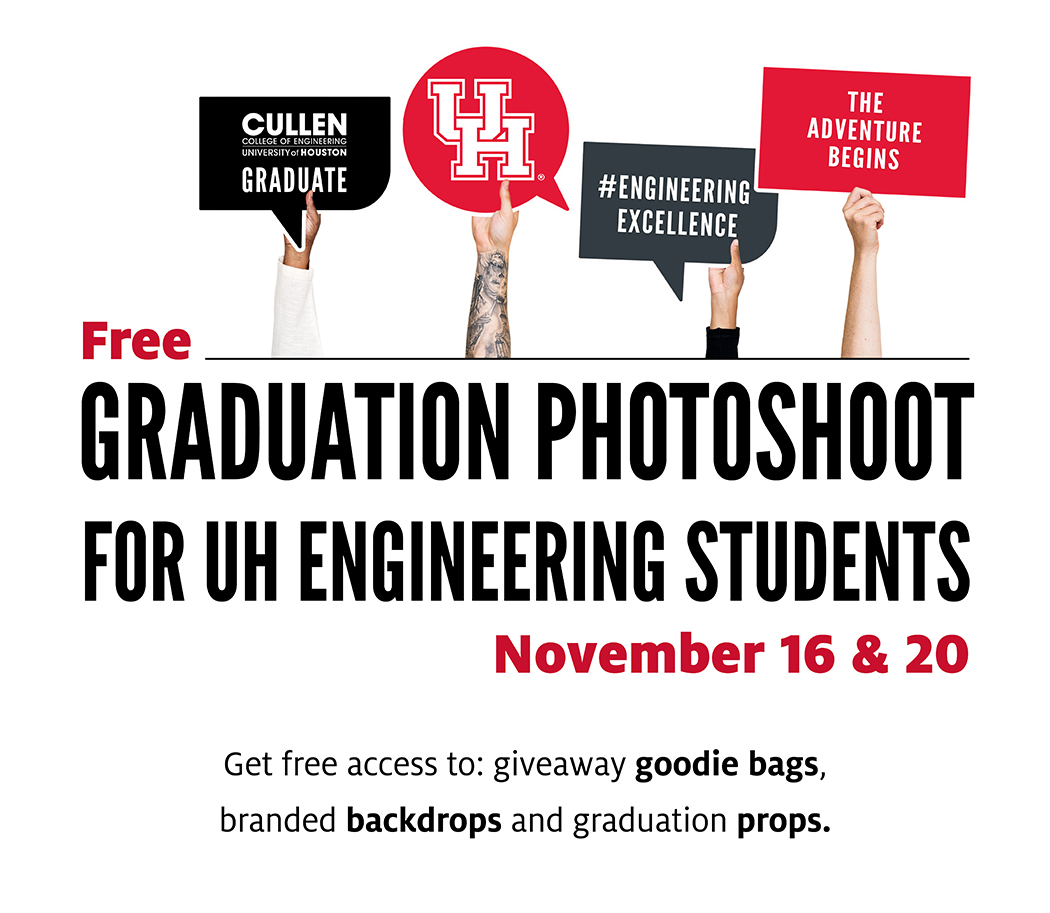 Summer and Fall 2020 #UHEngineering<https://urldefense.com/v3/__https://www.facebook.com/hashtag/uhengineering?__eep__=6&__cft__*0*=AZUFYhgVicXVqru7JiapoEXcfYrab6EqXhf6e30Z3bPGx5Vqgfff7H6NEsjCiomXKnohaoWgO4QbCFtF3AI9uQYSQ88AprNtOSU8IklYgsGLCS586viK9kIrsqYIY2hyBjzkswBGrhNp_Oszytiey0VdsvfV97naV6eUrJ_XysSrhwAnoi9PTL-9UjHNjqRz1qm-4U3Zc0E4D82-xyS0VCnu&__tn__=*NK-R__;W10q!!LkSTlj0I!WHsIVJULEHtV_uSFF2fuxSthbLf7J-iCE1RmOa4A0siJJJ3o42cORR8rF0P05BCfXh8$ > grads! We will be setting up selfie stations in Engineering Building 2 (W122) including a commencement-ready stage! So, come out with your friends and get some great photos to celebrate your achievements!