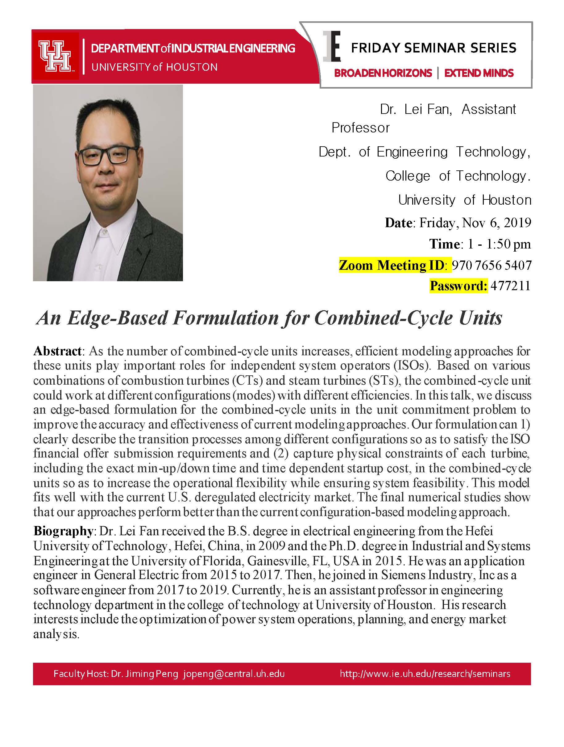 IE Friday Seminar Series - Nov. 6 - An Edge-Based Formulation for Combined-Cycle Units