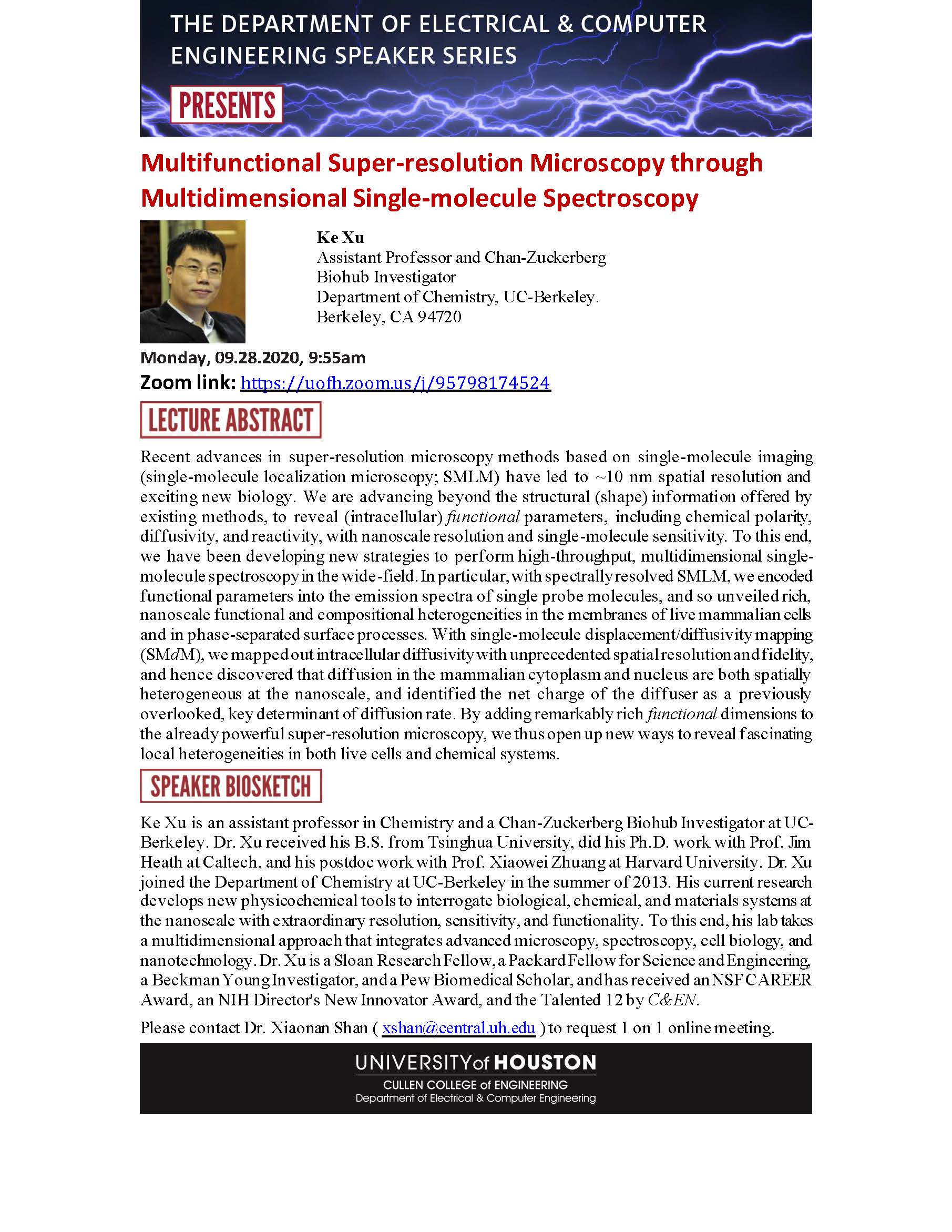 [CCoE Notice] ECE Seminar Talk: "Multifunctional Super-resolution Microscopy through Multidimensional Single-molecule Spectroscopy" - Monday, 28 September 2020 at 10 AM, online via ZOOM