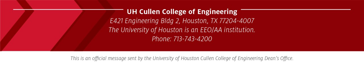 [LinkedIn] <https://urldefense.com/v3/__https://www.linkedin.com/company/university-of-houston-cullen-college-of-engineering/__;!!LkSTlj0I!WQ1WUt5Z_EmMv3sE3V9qh1KIi9vTe_zo31zKypWiCvQLermmeDBkO0aoHw5NqTwNw8c$>