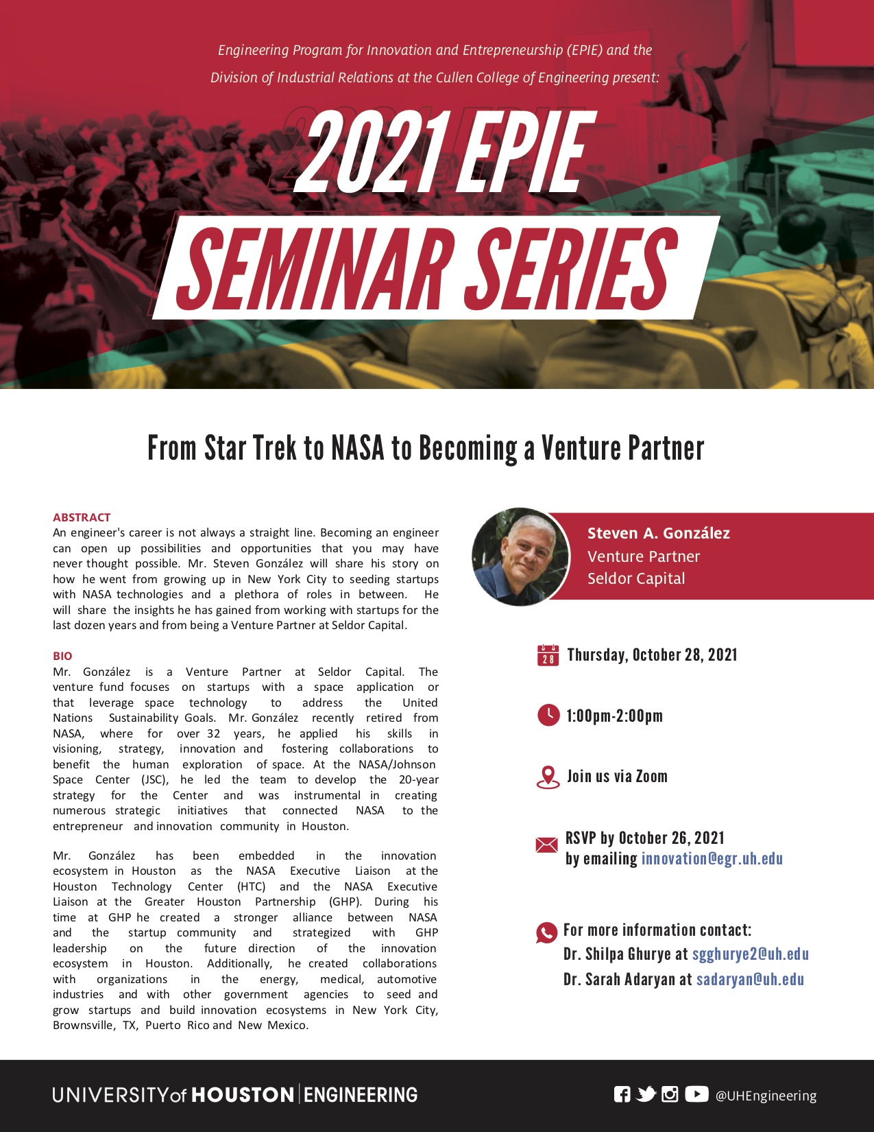Your Invitation To Attend the 2021 EPIE Seminar Series-Steven Gonzalez (RSVP by October 28)