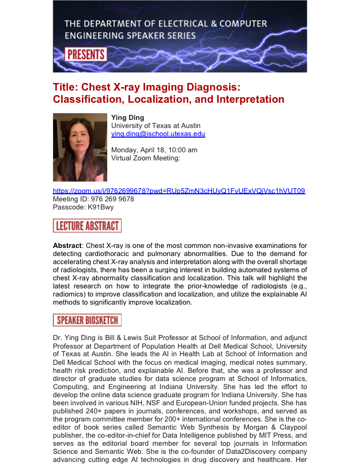 [CCoE Notice] ECE Seminar Announcement - Dr. Ying Ding