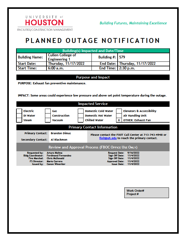 [CCoE Notice] #579 ENGINEEERING 1 - EXHAUST FAN MAINTENANCE (NOV. 17)
