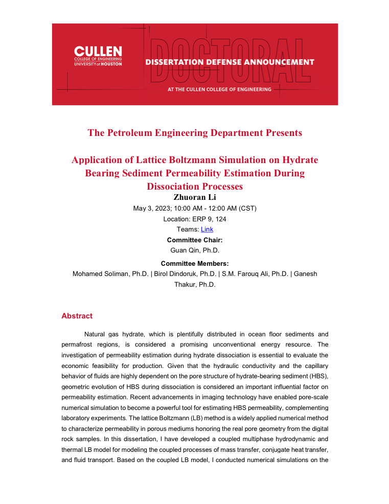 [CCoE Notice] Cullen College Dissertation Announcement- Zhuoran Li