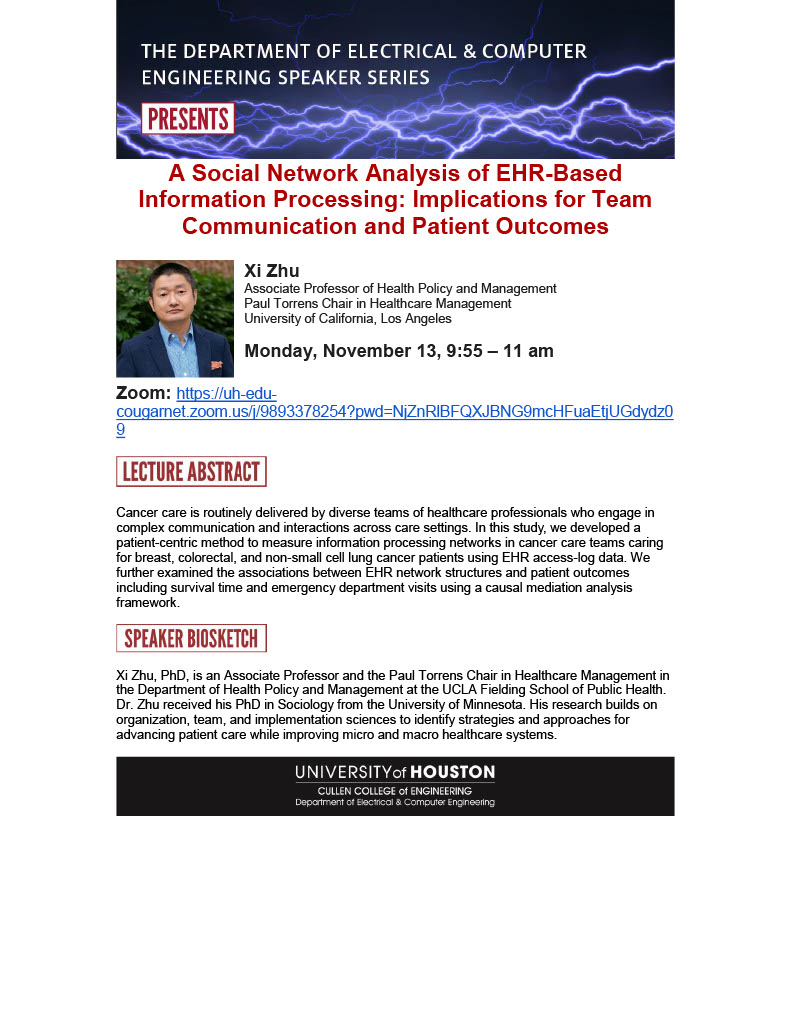 [CCoE Notice] ECE Seminar- TODAY, Monday, November 13, 9:55 a.m. – 11 a.m.