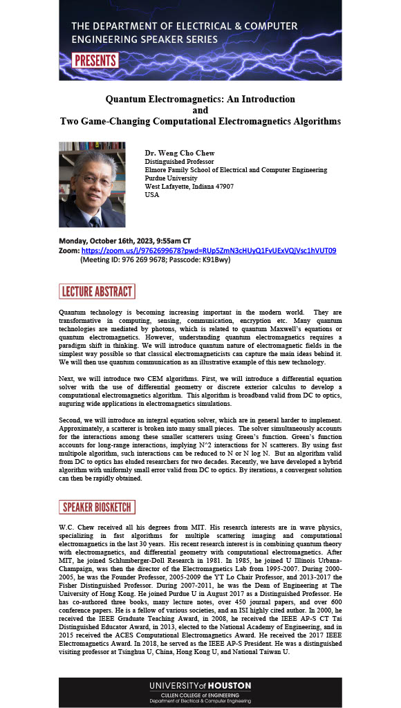 [CCoE Notice] ECE seminar - Oct 16th (Monday) 10 am - Weng Cho Chew - Purdue