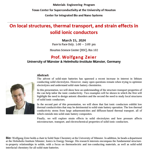 [CCoE Notice] Material Program Seminar Announcement-03.15.2024-On local structures, thermal transport, and strain effects in solid ionic conductors