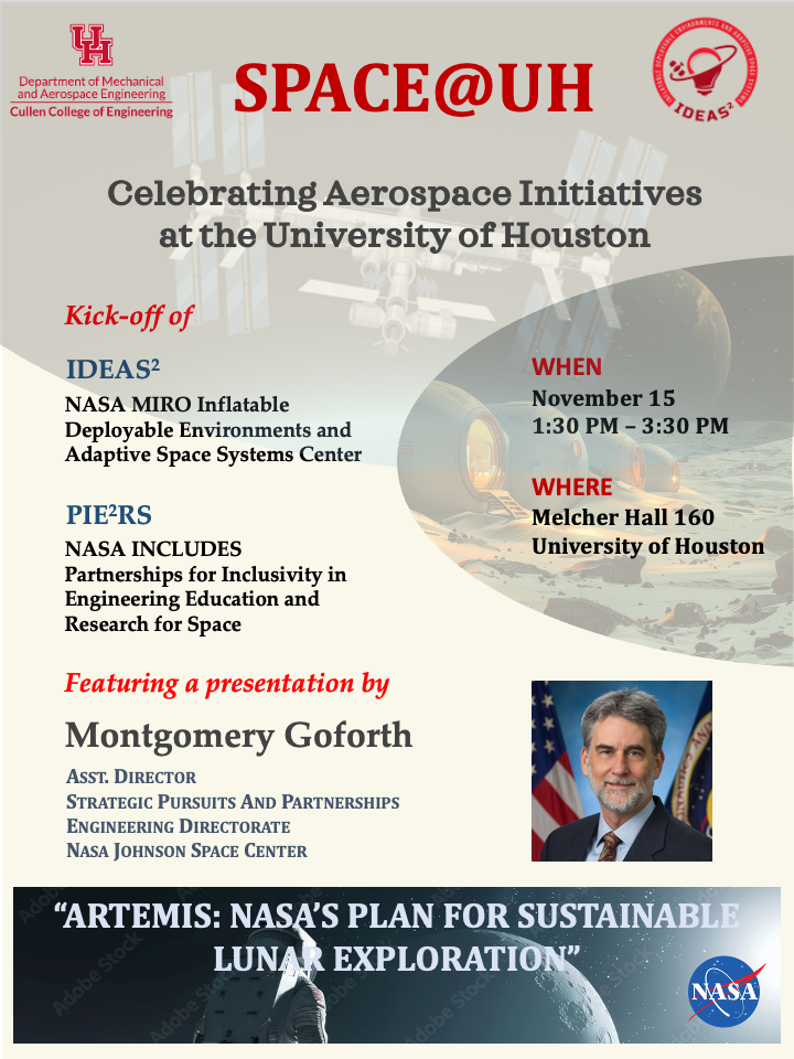 Join us tomorrow, Nov. 15 in Melcher Hall from 1:30-3:30 p.m. for an exciting celebration of the aerospace initiatives at the University of Houston!